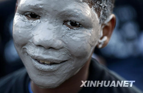 9月7日,在南非瑟德堡地區(qū),一名兒童將油彩涂在臉上參加“生命的景觀”活動(dòng)。這項(xiàng)一年一度的活動(dòng)旨在宣傳該地區(qū)土著民族科伊-桑人的文化傳統(tǒng)。 新華社/路透