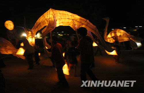 9月7日,在南非瑟德堡地區(qū),當(dāng)?shù)貎和瘮y燈籠參加“生命的景觀”活動(dòng)。新華社/路透