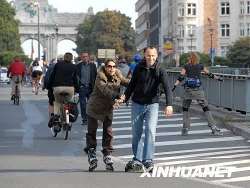 9月21日,在比利時(shí)首都布魯塞爾,一些市民滑旱冰出行。當(dāng)日,布魯塞爾開展“無(wú)車日”活動(dòng)。市區(qū)內(nèi)所有私人機(jī)動(dòng)車輛在9點(diǎn)至19點(diǎn)間禁行。市民可以在此間免費(fèi)使用公交系統(tǒng)或租用自行車。布魯塞爾的“無(wú)車日”活動(dòng)從2000年開始,每年9月舉辦一次。 |