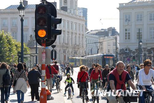 9月21日,在比利時(shí)首都布魯塞爾,市民騎自行車出行。當(dāng)日,布魯塞爾開展“無(wú)車日”活動(dòng)。市區(qū)內(nèi)所有私人機(jī)動(dòng)車輛在9點(diǎn)至19點(diǎn)間禁行。市民可以在此間免費(fèi)使用公交系統(tǒng)或租用自行車。布魯塞爾的“無(wú)車日”活動(dòng)從2000年開始,每年9月舉辦一次。 |