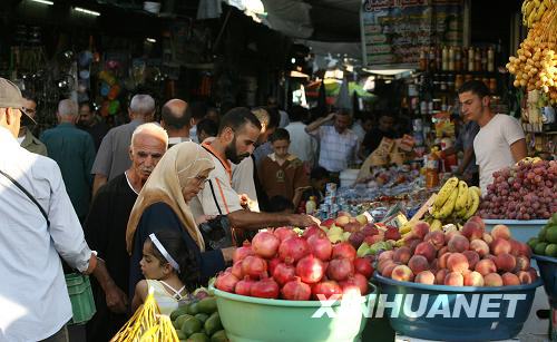 9月24日,巴勒斯坦人在加沙城中的老市場(chǎng)里買水果。齋月即將結(jié)束,巴勒斯坦人也開始采購(gòu)物品準(zhǔn)備迎接開齋節(jié)。