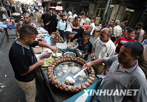9月24日,巴勒斯坦人在加沙城中的老市場(chǎng)里購(gòu)買食品。齋月即將結(jié)束,巴勒斯坦人也開始采購(gòu)物品準(zhǔn)備迎接開齋節(jié)。