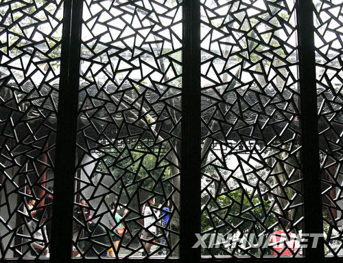10月4日,蘇州古典園林獅子林內(nèi)造型別致的花窗與游人相映成趣。