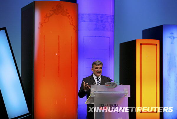 10月14日,土耳其總統(tǒng)居爾在德國法蘭克福書展的開幕式上致辭。第60屆法蘭克福書展15日開始向公眾開放,來自100余個國家和地區(qū)的7448家展商參加本次展會。德國法蘭克福書展始于1949年,是世界上最具影響力的書業(yè)盛會之一。新華社/路透