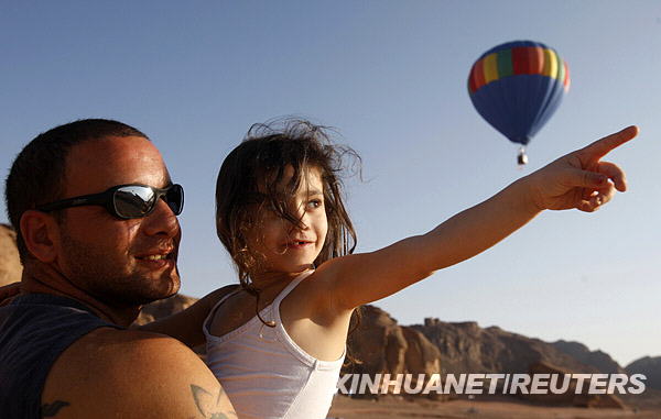 10月16日,在以色列的埃拉特市,一名小游客和父親共同觀看放飛的熱氣球。據悉,此次為期一周的熱氣球節(jié)是為慶祝猶太教傳統(tǒng)節(jié)日“住棚節(jié)”的到來而舉辦的。新華社/路透