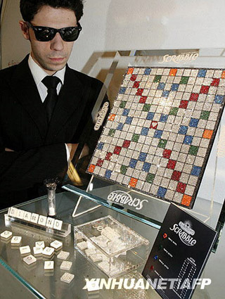 這款游戲道具由3萬多顆施華洛世奇水晶制成,價值2萬美元(約合13.4萬人民幣)。這個水晶拼字游戲?qū)⒃诰W(wǎng)上拍賣,以紀(jì)念此游戲面世60周年。拍賣所得款項將捐贈給美國田納西州一家兒童醫(yī)院。新華社/法新