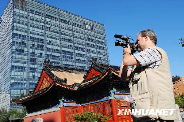 10月23日,來(lái)自俄羅斯全國(guó)電視廣播公司的記者鮑里斯在北京金融街街頭拍攝。
