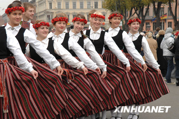 為迎接國家獨(dú)立90周年,拉脫維亞當(dāng)日舉行千人長距離舞蹈活動,共有來自全國99個(gè)舞蹈團(tuán)體的2208名演員列成長隊(duì)同時(shí)跳起歡快的民族舞蹈,組織者試圖以此舉創(chuàng)造新的最長距離舞蹈吉尼斯世界紀(jì)錄。拉脫維亞于1918年11月18日宣布成立獨(dú)立的拉脫維亞共和國;1940年8月5日,拉脫維亞加入蘇聯(lián);蘇聯(lián)解體前夕,拉于1991年8月22日宣布恢復(fù)獨(dú)立。 | |