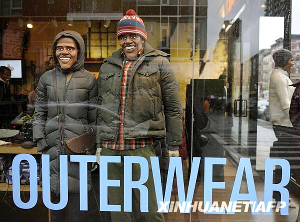 10月28日,在美國(guó)紐約的一家服裝店里,做成美國(guó)民主黨總統(tǒng)候選人奧巴馬模樣的模特身著冬裝,笑迎顧客。美國(guó)總統(tǒng)選戰(zhàn)如火如荼,商家們想出此絕活招攬顧客,成為一景。新華社/法新