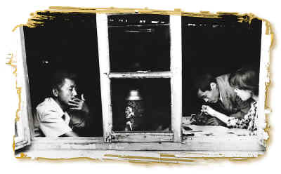 | 破產(chǎn)后,原廠長石永階(左)在抽著悶煙,看著工人們領(lǐng)取救濟(jì)金證。新華社發(fā) |