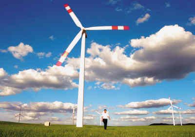 近年來(lái),內(nèi)蒙古自治區(qū)依托資源、區(qū)位優(yōu)勢(shì),加快工業(yè)和農(nóng)牧業(yè)經(jīng)濟(jì)發(fā)展。自2002年以來(lái),連續(xù)6年經(jīng)濟(jì)增速居全國(guó)第一,2007年內(nèi)蒙古生產(chǎn)總值達(dá)到6018.8億元,經(jīng)濟(jì)規(guī)模躍居全國(guó)第16位。目前,內(nèi)蒙古風(fēng)電裝機(jī)容量已達(dá)到159萬(wàn)千瓦,位居全國(guó)之首。 圖為錫林郭勒盟輝騰梁風(fēng)電場(chǎng)。 | |