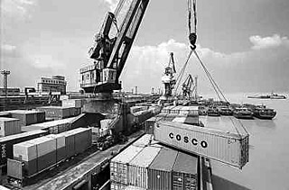 | 江西九江市外貿碼頭一派繁忙景象。孫仁貴