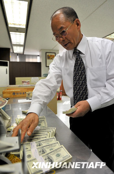 10月30日,在韓國首都首爾的一家銀行,一名工作人員在清點(diǎn)美元。