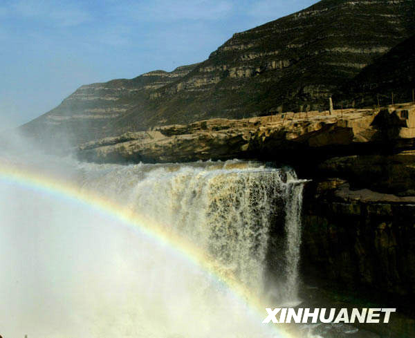 黃河壺口瀑布上空“霓虹戲水”