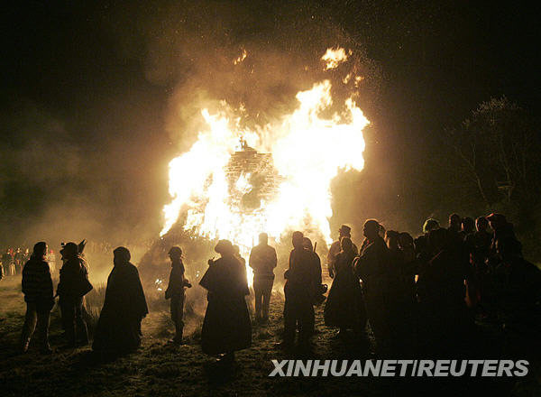 11月5日,人們聚集在英國(guó)南部的劉易斯市觀看點(diǎn)燃的篝火。當(dāng)天是英國(guó)一年一度的焰火慶典節(jié)日,人們點(diǎn)起篝火,燃放煙花慶祝這一節(jié)日。新華社/路透