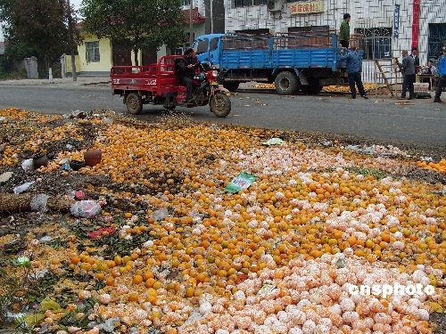 被當(dāng)成垃圾傾倒在路邊的柑橘。 | |