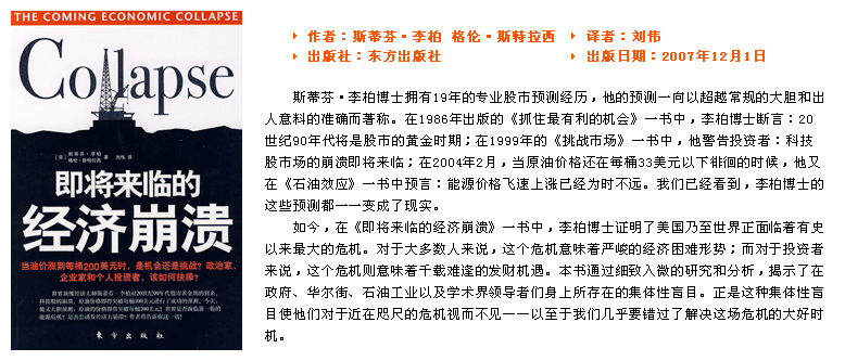 第一種最佳投資:黃金和黃金股 第二種最佳投資:石油和石油股 為什么看好石油服務(wù)公司 第三種最佳投資:房地產(chǎn) 第四種最佳投資:中國和印度 防范通貨緊縮