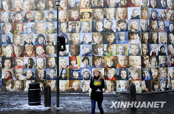 11月15日,在冰島首都雷克雅未克,一名女子從一面張貼著數(shù)百張兒童肖像照片的墻壁旁走過。該面“兒童墻”由幾名當(dāng)?shù)匦袨樗囆g(shù)家歷時近一年拍攝制作完成,由大約500幅3-6歲的冰島邊遠(yuǎn)地區(qū)兒童肖像照片組成,現(xiàn)在已是雷克雅未克市中心的一道風(fēng)景。創(chuàng)作者希望以此喚醒人們對生命和自然的關(guān)注和熱愛。