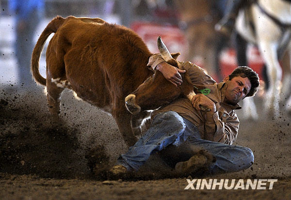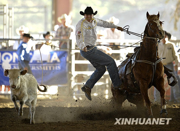 11月16日,來自內(nèi)華達(dá)州拉斯維加斯的選手賈森在套牛比賽中。當(dāng)日,2008加利福尼亞專業(yè)牛仔競(jìng)技大會(huì)在加州諾科市舉行,來自加州、內(nèi)華達(dá)和亞利桑那州的專業(yè)牛仔競(jìng)技選手參加為期三天的比賽。牛仔競(jìng)技源自牛仔在放牧過程中的各種騎術(shù)、馴馬和擒牛等技巧,如今演變成有規(guī)則觀賞性強(qiáng)的競(jìng)技比賽,深受北美人的喜愛,每年僅美國(guó)專業(yè)牛仔競(jìng)技協(xié)會(huì)舉辦的比賽就接近百場(chǎng)。 |