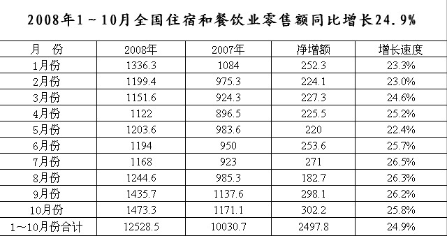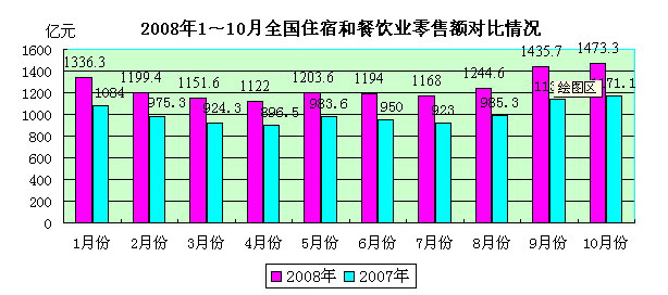 附:2008年1-10月全國住宿和餐飲業(yè)零售額圖表