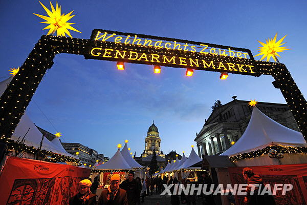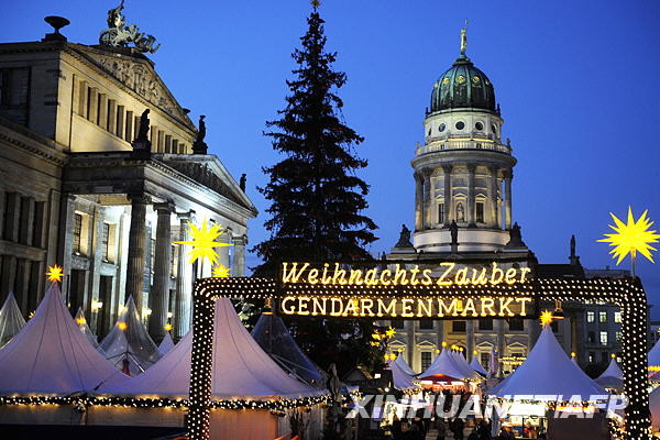 11月24日,在德國(guó)首都柏林,圣誕市場(chǎng)里人來(lái)人往。新華社/法新