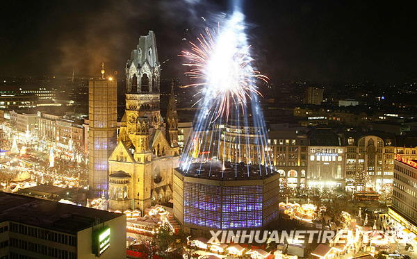11月24日,德國(guó)首都柏林上空焰火綻放,慶祝圣誕市場(chǎng)的開(kāi)張。新華社/路透