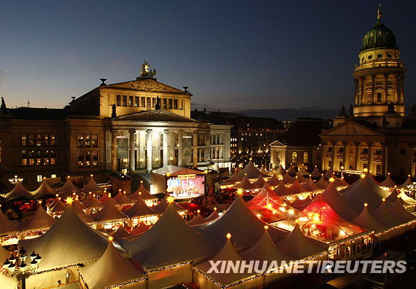 11月24日,德國(guó)首都柏林一個(gè)剛開(kāi)張的圣誕市場(chǎng)燈火通明。新華社/路透