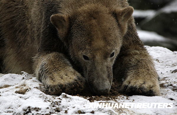 12月3日,德國(guó)柏林動(dòng)物園的明星北極熊“克努特”在熊舍內(nèi)玩耍!翱伺亍5日將迎來(lái)兩歲生日,然而,受金融危機(jī)影響,動(dòng)物園今年非但不準(zhǔn)備給它舉辦生日“晚會(huì)”,還因財(cái)政拮據(jù)宣布將為其另找新家。新華社/路透