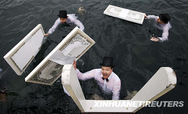 12月14日,在瑞士日內(nèi)瓦湖,幾名打扮成銀行從業(yè)者的選手參加第71屆“圣誕杯”冬泳比賽。當(dāng)天,眾多參賽者在6攝氏度的湖水中暢游125米,以別開(kāi)生面的方式迎接即將到來(lái)的圣誕節(jié)。新華社/路透
