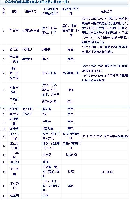 首批《食品中可能違法添加的非食用物質(zhì)品種名單》