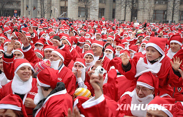 12月21日,在羅馬尼亞首都布加勒斯特市中心憲法廣場,3939名市民身著圣誕老人服飾聚集在一起。新華社/羅通社