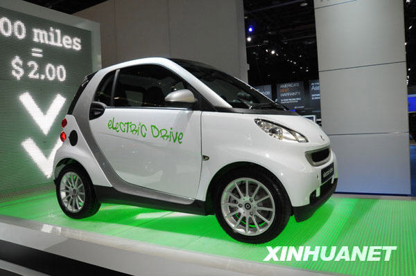 1月11日,韓國現(xiàn)代汽車公司推出的電動小型汽車亮相北美國際車展。當(dāng)日,2009北美國際車展在美國底特律開幕。根據(jù)主辦方提供的資料,本屆車展預(yù)計將發(fā)布約50款新車,以電動車、混合動力車為主打的環(huán)保節(jié)能車型是參展商極力打造的賣點(diǎn)。