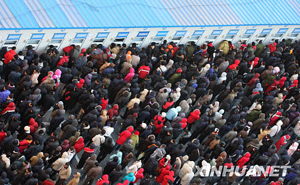 1月12日是2009年春運的第2天,鐵路北京西站迎來購票高峰,廣場上的售票區(qū)人山人海。