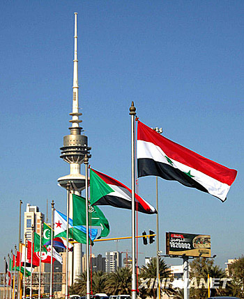 1月18日,阿拉伯國家聯(lián)盟(阿盟)成員國的旗幟在科威特首都科威特城街頭飄揚(yáng)。1月19日至20日,首屆阿拉伯國家經(jīng)濟(jì)峰會(huì)將在科威特舉行。