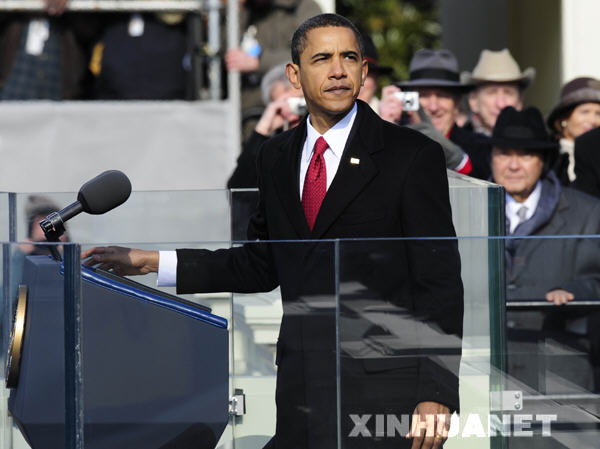 1月20日,美國總統(tǒng)奧巴馬在就職儀式上發(fā)表就職演說。當日,奧巴馬在美國國會大廈西側(cè)的露天平臺上正式宣誓就任美國第44任總統(tǒng)。