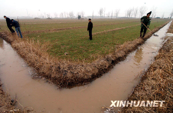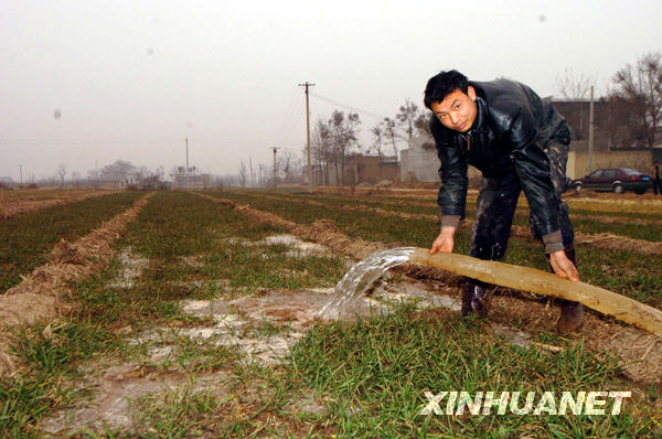 2月4日,陜西省蒲城縣洛惠渠陳莊管理站專(zhuān)業(yè)澆地隊(duì)員馬春成(右一)正在田間實(shí)施灌溉。面對(duì)日趨嚴(yán)重的旱情,陜西渭南要求全市各灌區(qū)動(dòng)用一切水利設(shè)施,挖掘水源潛力,擴(kuò)大灌溉面積。渭南市是陜西小麥主產(chǎn)區(qū)之一,目前已經(jīng)形成百日連旱,全市各類(lèi)農(nóng)作物受旱面積達(dá)到380萬(wàn)畝,其中重旱災(zāi)20萬(wàn)畝。 |