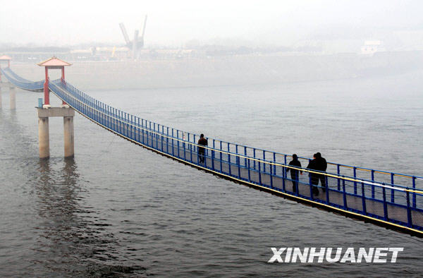 2月5日,幾名游客從黃河小浪底大壩出水口的鐵索橋上走過。鑒于黃河流域多個省份同時發(fā)生嚴重干旱,黃河防總進一步提升預警級別,從2月3日起黃河流域區(qū)域干旱由黃色預警升級為橙色預警,啟動二級應急響應。小浪底水庫日均出庫流量也加大至每秒600立方米,以保障沿黃地區(qū)抗旱用水。