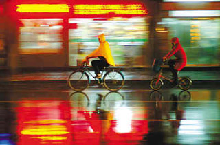 2月12日,北京市民在雨中騎行。新華社記者 公磊