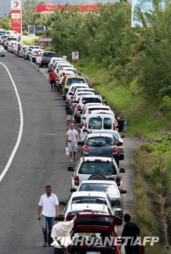 2月14日,在法屬馬提尼克島,等候加油的車輛排成長隊(duì)。