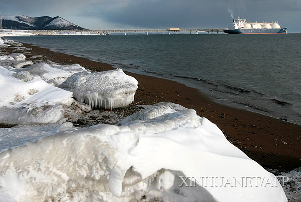 2月16日,一艘液化天然氣運(yùn)輸船?吭诙砹_斯薩哈林島上的液化天然氣站附近。 俄羅斯定于2月18日啟用它在薩哈林島上的液化天然氣站,以向日本、韓國和美國提供天然氣,其中大約65%的產(chǎn)量將供應(yīng)日本。根據(jù)薩哈林能源公司統(tǒng)計(jì),它負(fù)責(zé)開發(fā)的這座天然氣站預(yù)計(jì)將年產(chǎn)980萬噸液化天然氣,大致相當(dāng)于世界總供應(yīng)量的4%。新華社/法新
