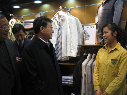 商務(wù)部副部長姜增偉日前率有關(guān)司局考察了安徽省落實(shí)《國務(wù)院辦公廳關(guān)于搞活流通擴(kuò)大消費(fèi)的意見》(國辦發(fā)【2008】134號(hào))的情況。 姜增偉實(shí)地查看了“農(nóng)超對接”試點(diǎn)企業(yè)麥德龍集團(tuán)的肉品基地和百大合家福超市的蔬菜基地,他指出,“農(nóng)超對接”試點(diǎn)企業(yè)在生產(chǎn)中要加強(qiáng)指導(dǎo),協(xié)助基地做大做強(qiáng),與基地建立長期穩(wěn)定的供貨關(guān)系,讓基地能夠安心生產(chǎn)。就生豬屠宰情況,姜部長還強(qiáng)調(diào)了安全問題,要求企業(yè)具備戰(zhàn)略思維,規(guī)模性屠宰,標(biāo)準(zhǔn)化生產(chǎn),抓好產(chǎn)品質(zhì)量和食品安全。 姜增偉還聽取了安徽省商務(wù)廳、合肥市商務(wù)局、廬江縣商務(wù)局和徽商集團(tuán)、合肥百大集團(tuán)的工作匯報(bào),了解地方各級商務(wù)系統(tǒng)和企業(yè)在貫徹落實(shí)134號(hào)文件中的實(shí)際工作情況以及遇到的困難與挑戰(zhàn),認(rèn)真聽取了他們的意見和建議,并就如何做好下一階段的商務(wù)工作提出了要求。 姜增偉表示,國辦134號(hào)文件是應(yīng)對金融危機(jī)沖擊、保證經(jīng)濟(jì)增長的重要舉措,安徽省商務(wù)部門在落實(shí)文件工作上采取了一些好做法、取得了一些好經(jīng)驗(yàn),值得肯定。望安徽省結(jié)合實(shí)際進(jìn)一步開拓創(chuàng)新,通過搞活商品流通服務(wù)于當(dāng)?shù)亟ㄔO(shè),抓出成效,走在全國的前列。 姜增偉說,各級商務(wù)主管部門要重視市場調(diào)研。他提出,在金融危機(jī)不斷擴(kuò)展的情況下,要保持繁榮穩(wěn)定、防止經(jīng)濟(jì)大起大落、擴(kuò)大消費(fèi),首先要改善老百姓的消費(fèi)預(yù)期、穩(wěn)住即期消費(fèi),各級商務(wù)主管部門要深入調(diào)研,了解情況,做好市場監(jiān)測,對形勢做出正確判斷,加強(qiáng)對消費(fèi)者心理的研究,采取措施解決消費(fèi)心理問題,使老百姓愿意消費(fèi)、放心消費(fèi)。 在皖期間,姜增偉還視察了合肥百大集團(tuán)的鼓樓商廈和徽商集團(tuán)的商之都、紅府超市等,了解市場情況。 |