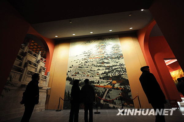 2月18日,人們在明孝陵博物館新館內(nèi)的大型漆畫前參觀。
