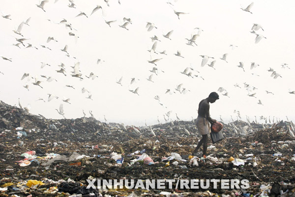 3月7日,一名男子在斯里蘭卡首都科倫坡郊外的一個(gè)垃圾場(chǎng)里揀拾有用的物品。新華社/路透