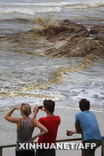 3月13日,在澳大利亞昆士蘭州庫魯姆,游客觀望被污染的海水。一艘貨輪11日在昆士蘭州附近海域遭遇風(fēng)暴,導(dǎo)致約大量燃油泄漏,船上搭載的一些裝有化學(xué)品的集裝箱也落入海中。澳大利亞有關(guān)方面稱澳東北部數(shù)十個(gè)觀光海灘已被泄漏的燃油和化學(xué)品污染。新華社/法新