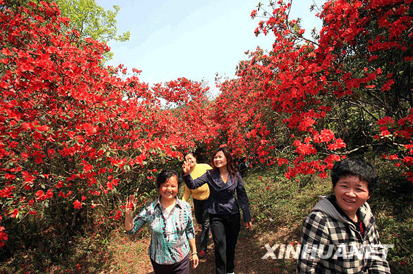 3月15日,在廣西融水苗族自治縣懷寶鎮(zhèn),游客在杜鵑花叢中游玩。陽春三月,位于廣西大苗山深處融水縣懷寶鎮(zhèn)的野生杜鵑花競相綻放,令前來賞花的游人沉醉流連。