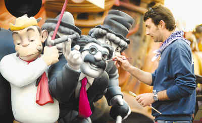每年3月中旬,西班牙巴倫西亞市都會舉行為期一周的“火節(jié)”,以紀念這座城市的守護神圣約瑟夫。圖為一名藝術家正在描繪為慶!盎鸸(jié)”而準備的塑像。“火節(jié)”的高潮是燒掉各種奇形怪狀的塑像。新華社發(fā)