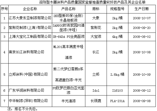 溶劑型木器涂料:抽查了北京、天津、上海、江蘇、浙江、安徽、山東、廣東、福建、湖北、四川、湖南、重慶、江西、廣西15個(gè)省、直轄市、自治區(qū)213家企業(yè)生產(chǎn)的213種產(chǎn)品,產(chǎn)品實(shí)物質(zhì)量合格率為98.1%。這次抽查,重點(diǎn)對(duì)溶劑型木器涂料的揮發(fā)性有機(jī)化合物、苯、甲苯和二甲苯總和、游離甲苯二異氰酸酯、重金屬等項(xiàng)目進(jìn)行了檢驗(yàn)。抽查中發(fā)現(xiàn)的主要質(zhì)量問題是可溶性鉛、可溶性鉻、苯、游離甲苯二異氰酸酯不合格。