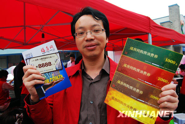 3月21日,福州市民鄢志琿展示剛領(lǐng)到的購(gòu)房消費(fèi)券套票。