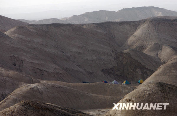 中國(guó)石油東方物探公司塔里木經(jīng)理部的工人住宿的帳篷(3月29日攝)。新華社記者:邢廣利攝