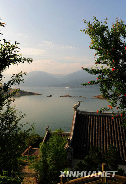 5月16日,三峽水位下降后,大壩前木魚島露出水面。